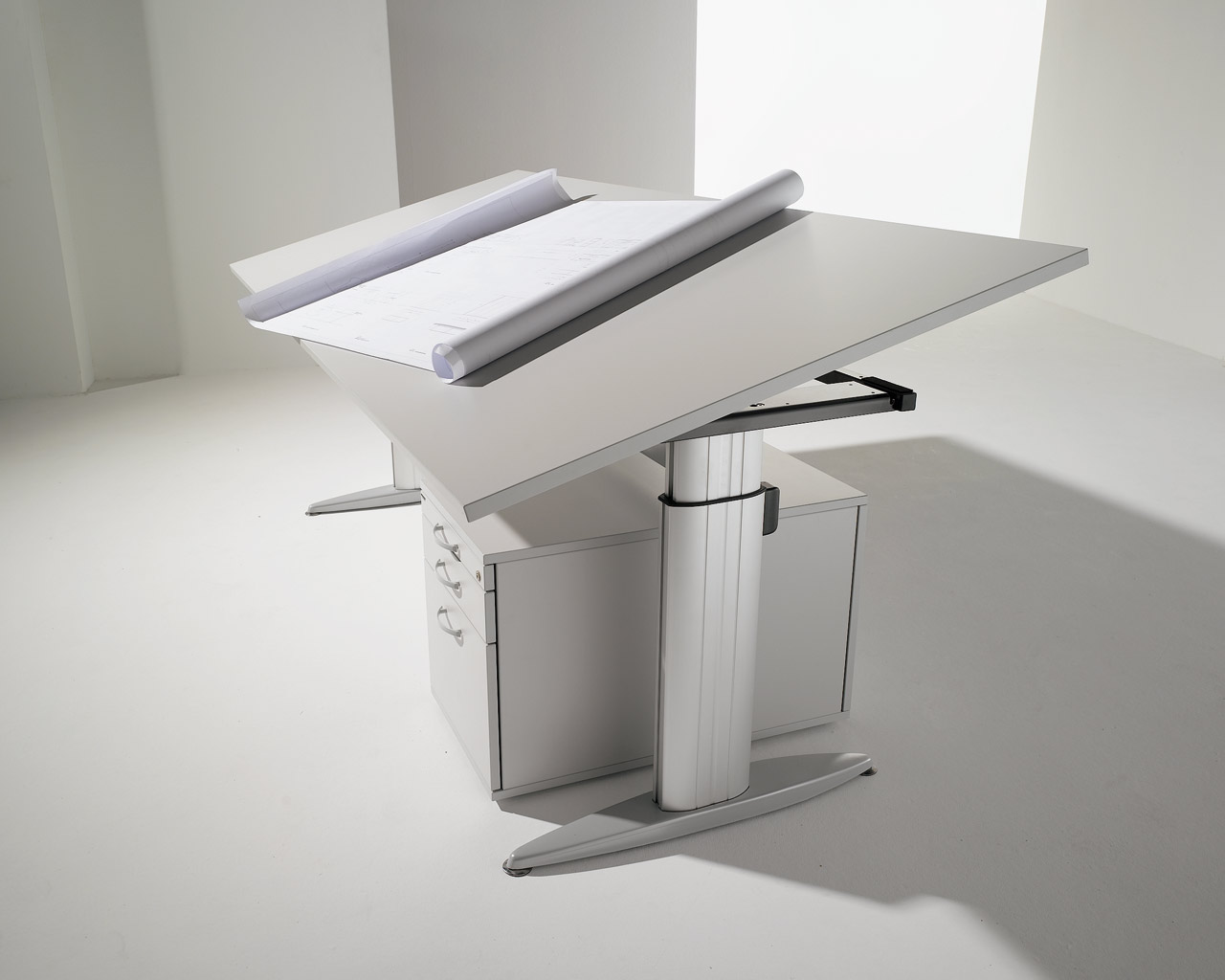 Eine korrekte, auf Körpergröße und Arbeitsposition des Mitarbeiters angepasste Position von Bildschirm und Arbeitsfläche ist ein entscheidendes Kriterium für die ergonomische Effizienz eines CAD-Arbeitsplatzes. Durch Höhenverstellungen der Bildschirmebene in einem Bereich von 140 mm (manuelle fixvariable Rasterverstellung) oder 185 mm (motorische Höhenverstellung) in Relation zur Tastaturebene schaffen LIBERO CAD-Arbeitsplätze jederzeit optimale Arbeitsbedingungen.