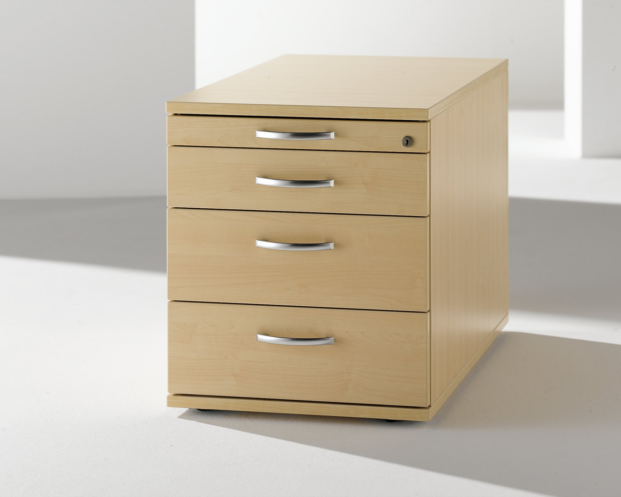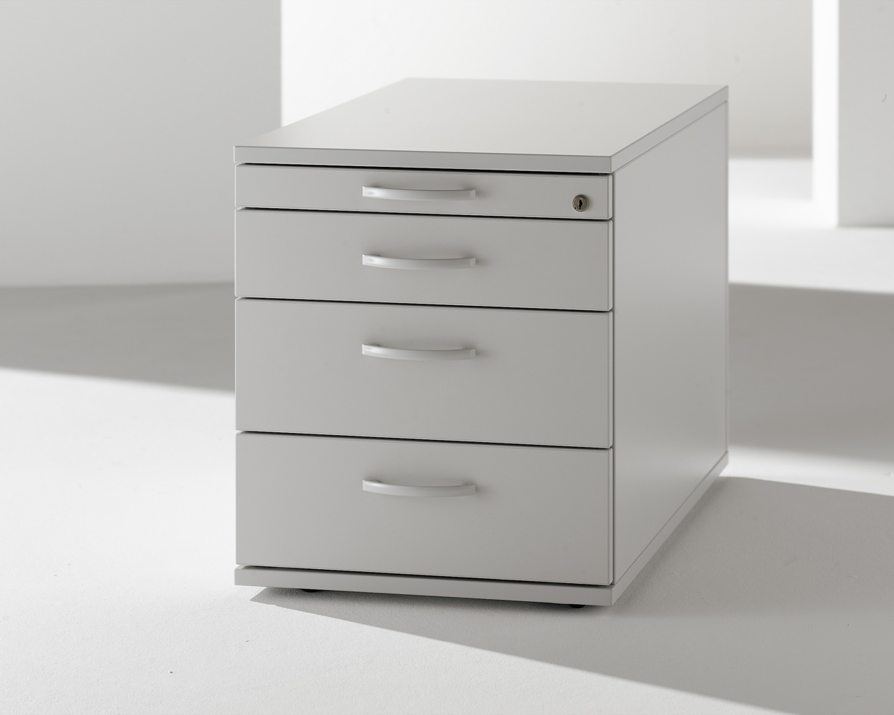Die Rollcontainer (LIBERO Rollcontainer RC), mit Selbsteinzug und Auszugssperre, bieten jede Menge Stauraum und sind dank eingelassener Lenkrollen äußerst wendig. Für die nötige Sicherheit sorgt ein zentrales Schließsystem. Und ihre Ausstattung überzeugt mit vielen Vorzügen: