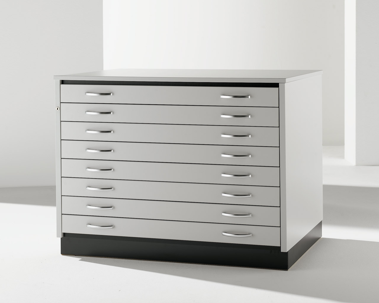 Die Ablageschränke (für die Papierformate A0/A1) sorgen für perfekte Ordnung auch bei großen Formaten. In verschiedenen Ausführungen erhältlich: mit 5, 8 oder 10 Schubfächern - mit sehr praktischen, funktionellen Details: